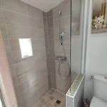 Petit gîte bleu présente une salle de bains avec une douche ouverte. Vous pourrez également profiter de la commodité d'un sèche-cheveux.